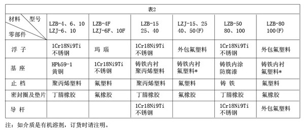1)注:“*”為擴(kuò)展流量范圍,防腐型其浮子材質(zhì)為不銹鋼材質(zhì)。