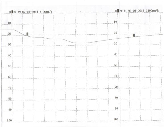 4.記錄功能:采用進口固定式熱敏頭,無筆墨消耗,無筆位誤差,抗震動;在100mm范圍內(nèi)有800個熱印點對測量值進行趨勢記錄和數(shù)字記錄,在記錄曲線同時打印標(biāo)尺刻度及每個通道標(biāo)記,每隔100mm打印一次刻度值、當(dāng)前時間和走紙速度。