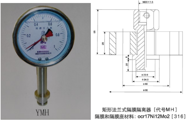 10、MH矩形法蘭式衛(wèi)生型隔膜壓力表(均質(zhì)機(jī)用):量程上限10~60MPa